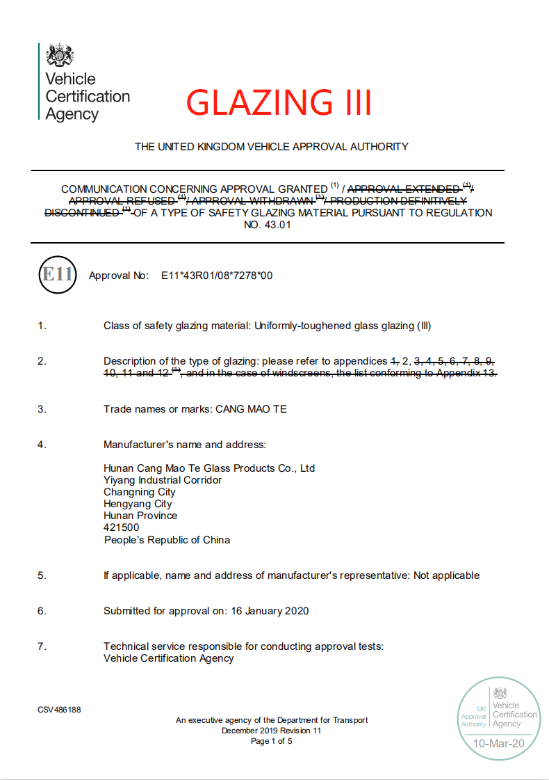 AUTOGLASS CERTIFICATION FOR ALL THE TEMPERED GLASS.